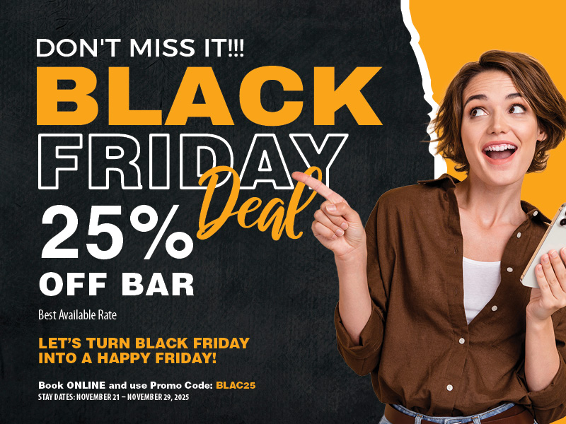 This Black Friday, treat yourself to a getaway! Whether you’re planning a cozy staycation or need a relaxing retreat, now’s the perfect time to save. For a limited time, enjoy 25% OFF your stay at Victoria Inn Hotel, Winnipeg. Book your Stay from November 21 to November 29, 2025.